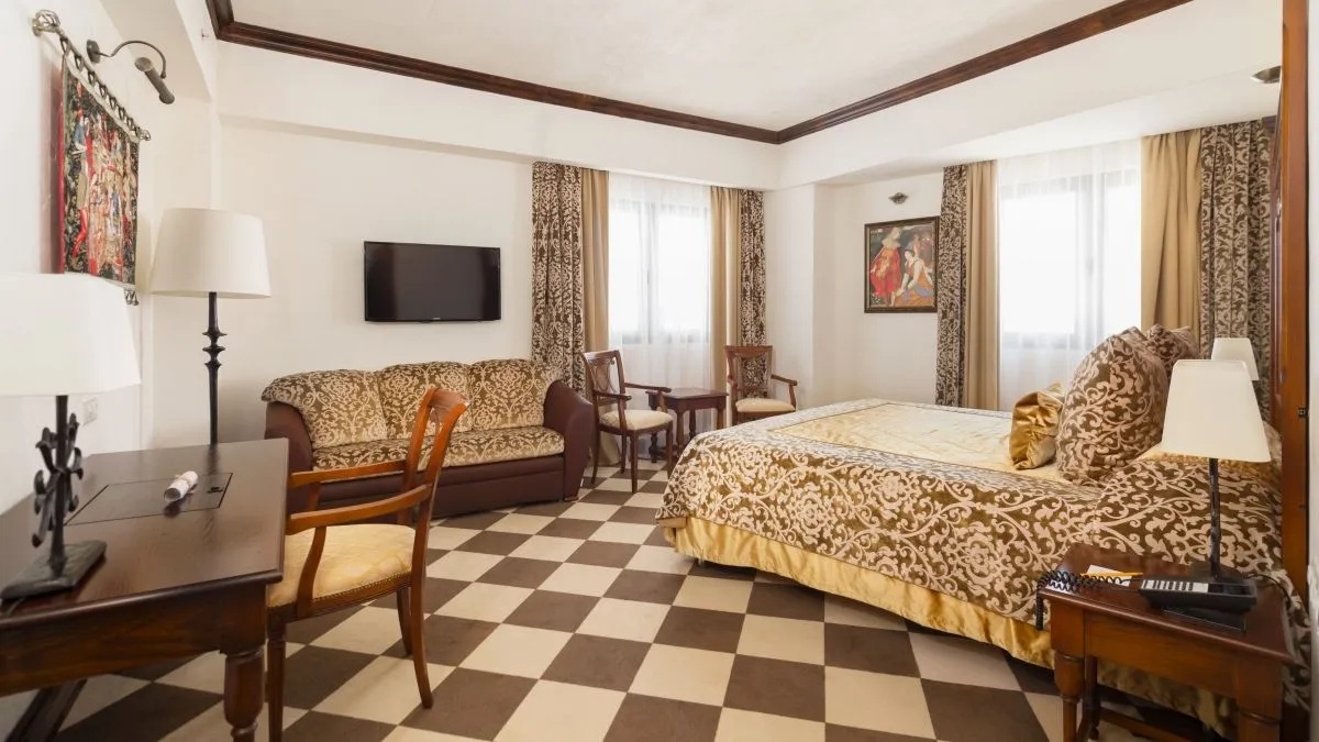 Отель-замок «Богатырь» — это яркая сказочная атмосфера, сочетающаяся с комфортом и сервисом уровня 4★. В стоимость проживания включено бесплатное посещение Сочи Парка.